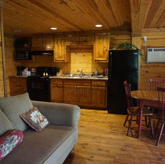 The cabin we found had Dish TV, WiFi, a full kitchen, a king-size bed, a tiled shower, and the most peaceful setting you can imagine, complete with a babbling brook, contented cows, and a covered bridge.