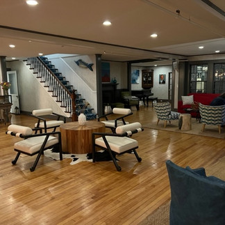 Our room, although, it had a king-size bed, a closet, and a full bathroom, was a little bit cramped, but the bed itself was comfortable, and there was plenty of hot water in the shower. (2 biggies) We spent time around a firepit one night and on the front porch another afternoon. Jazzy music plays throughout the common areas. This is definitely NOT a cookie-cutter chain hotel.